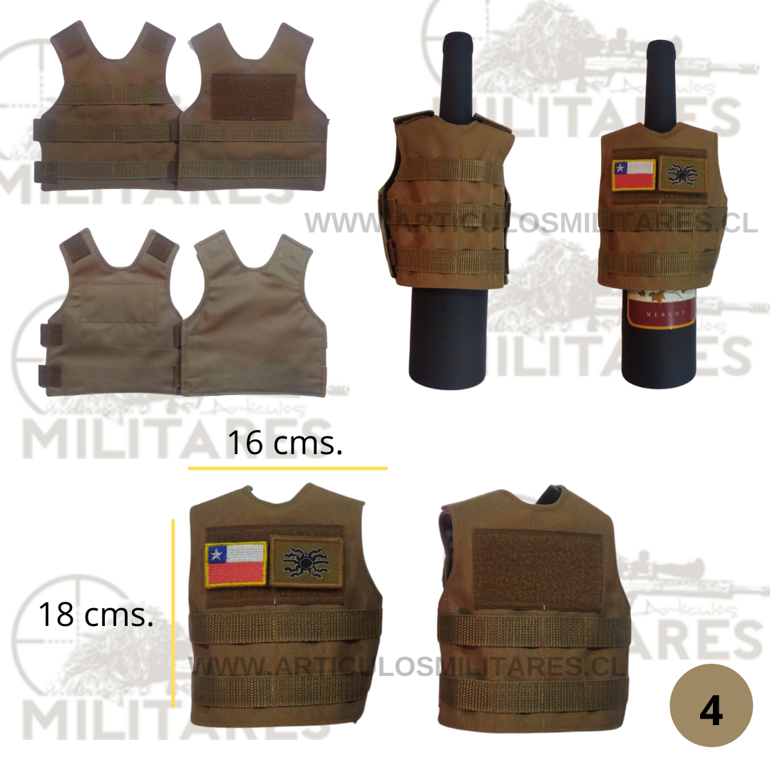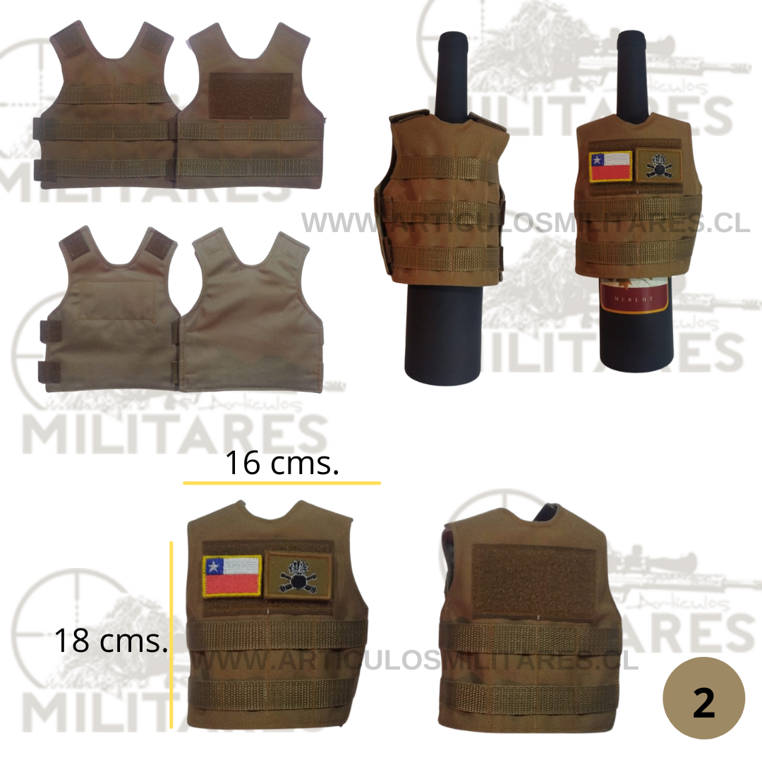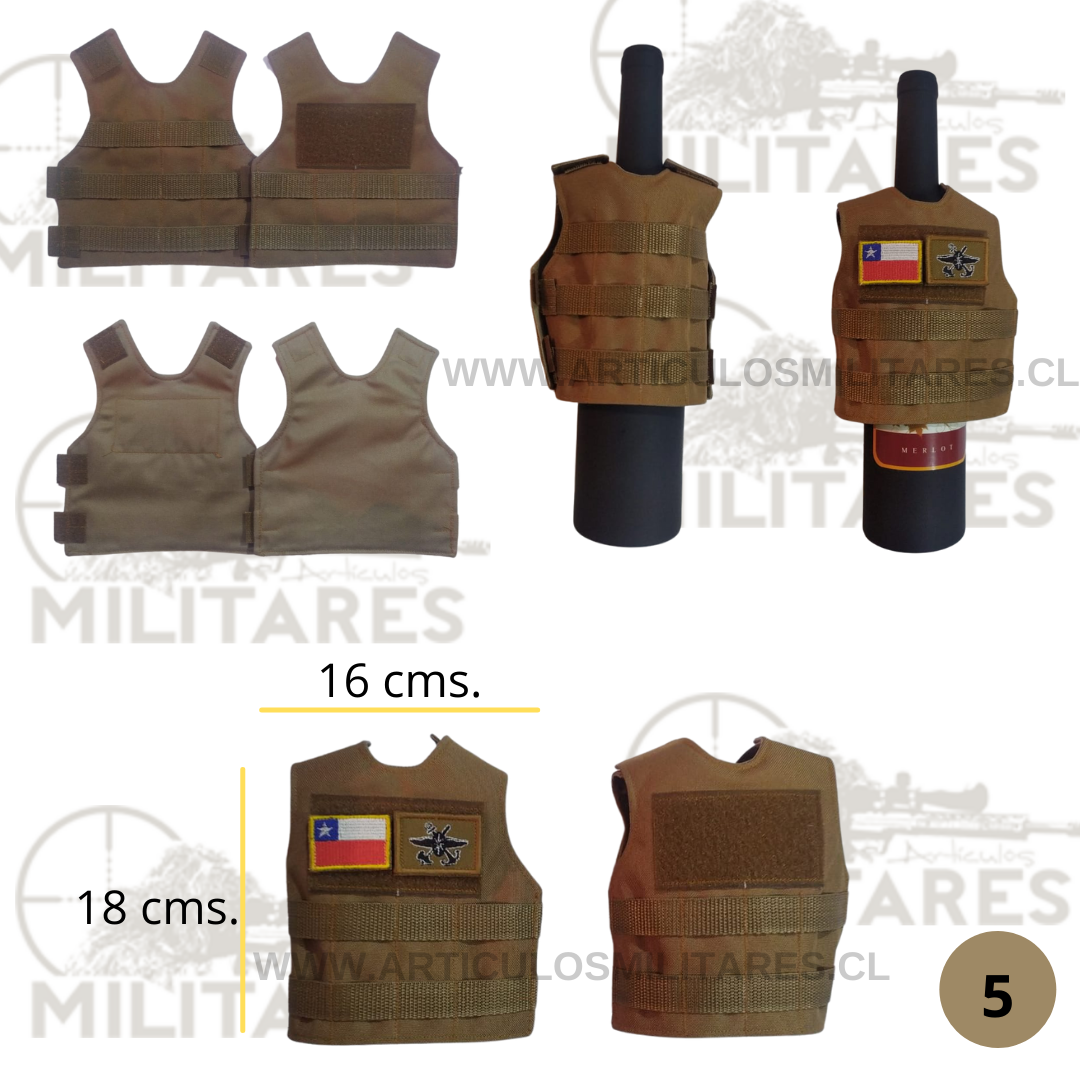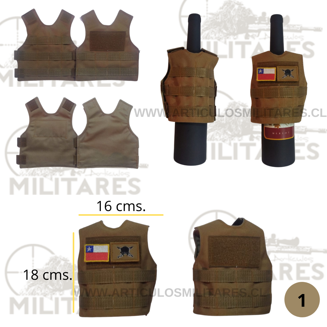 Con un diseño táctico del chaleco militar, fabricado con materiales de excelente calidad. Fabricación nacional. Este adorno le da a la botella un aspecto elegante y divertido.