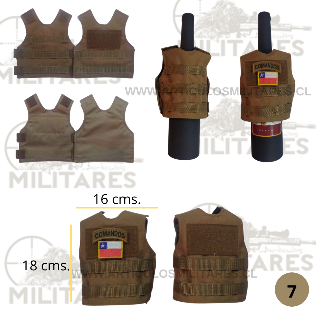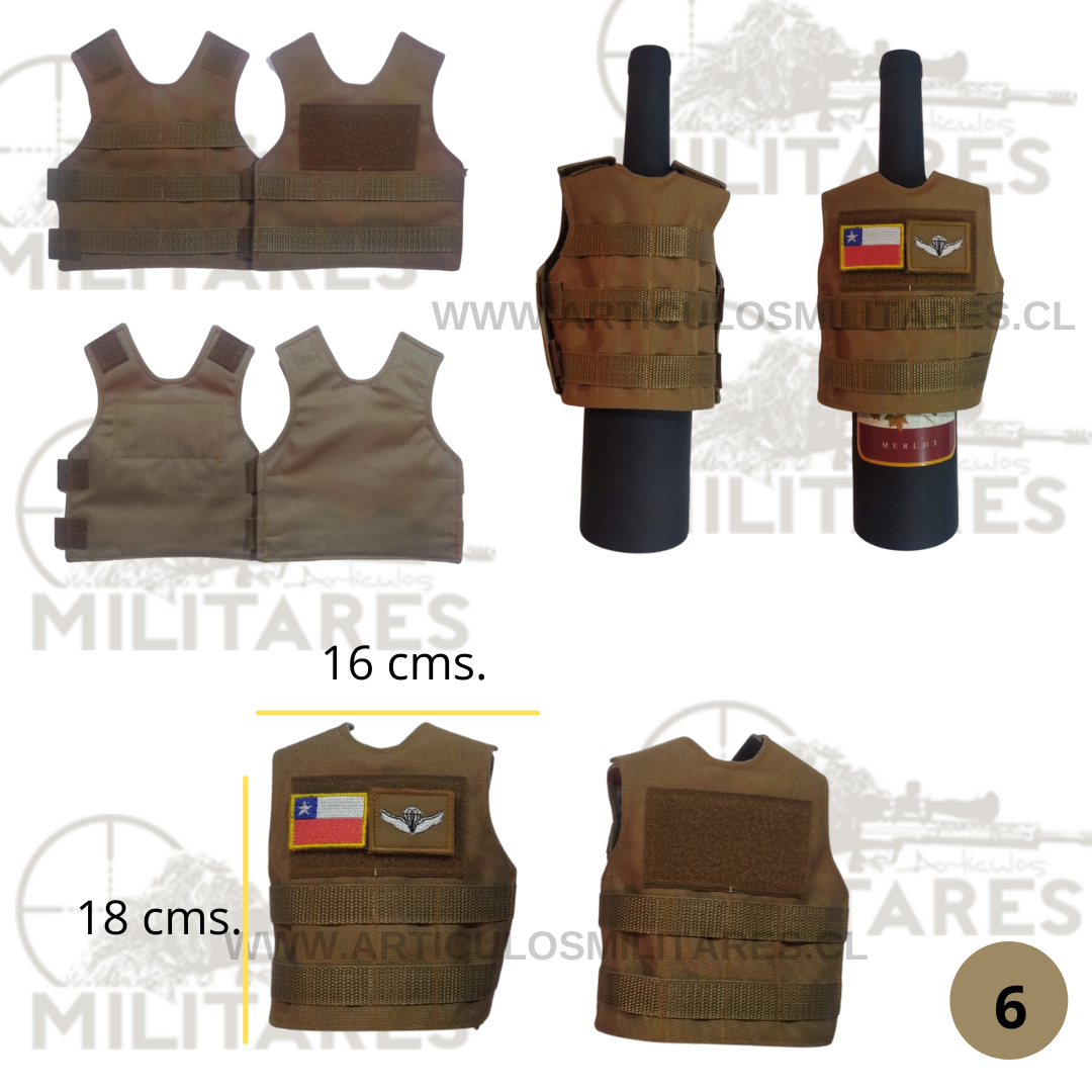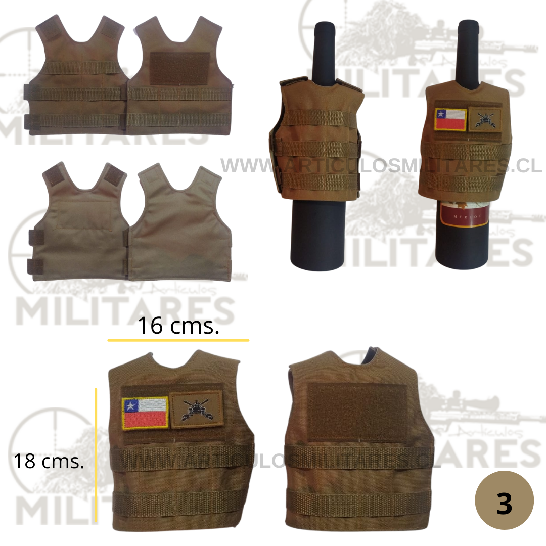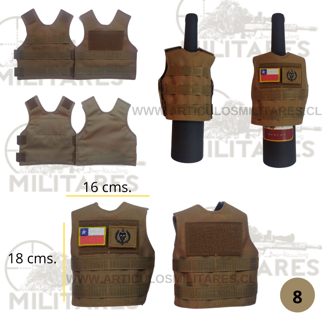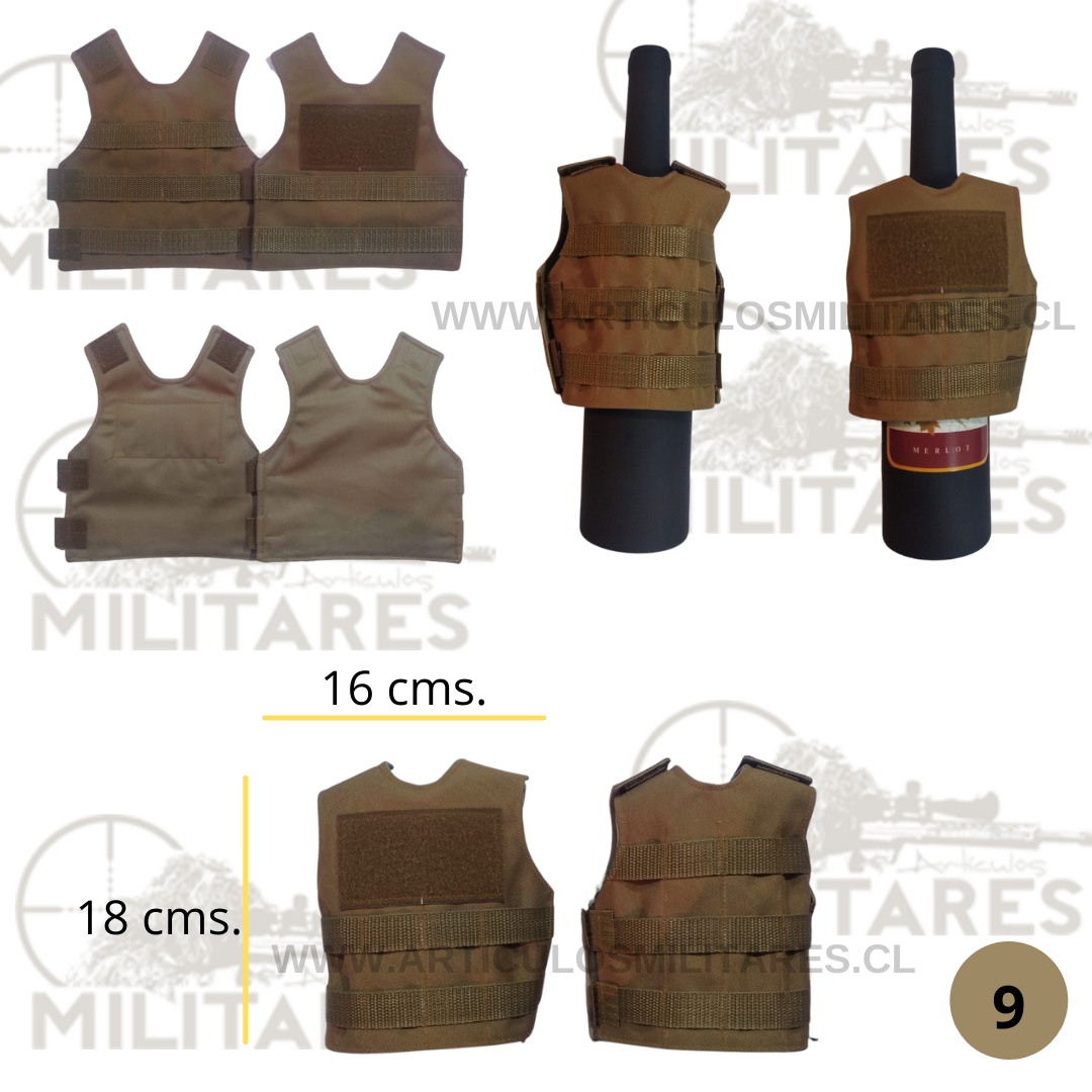 Con un diseño táctico del chaleco militar, fabricado con materiales de excelente calidad. Fabricación nacional. Este adorno le da a la botella un aspecto elegante y divertido.