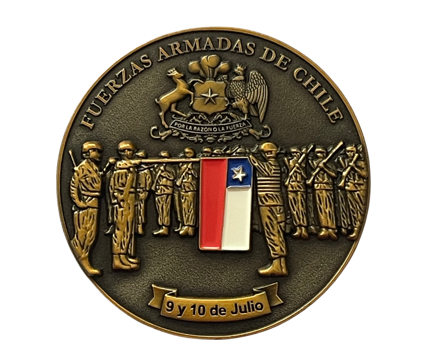 ✅ Detalles en alto relieve: soldados formados, bandera chilena y escudo nacional
